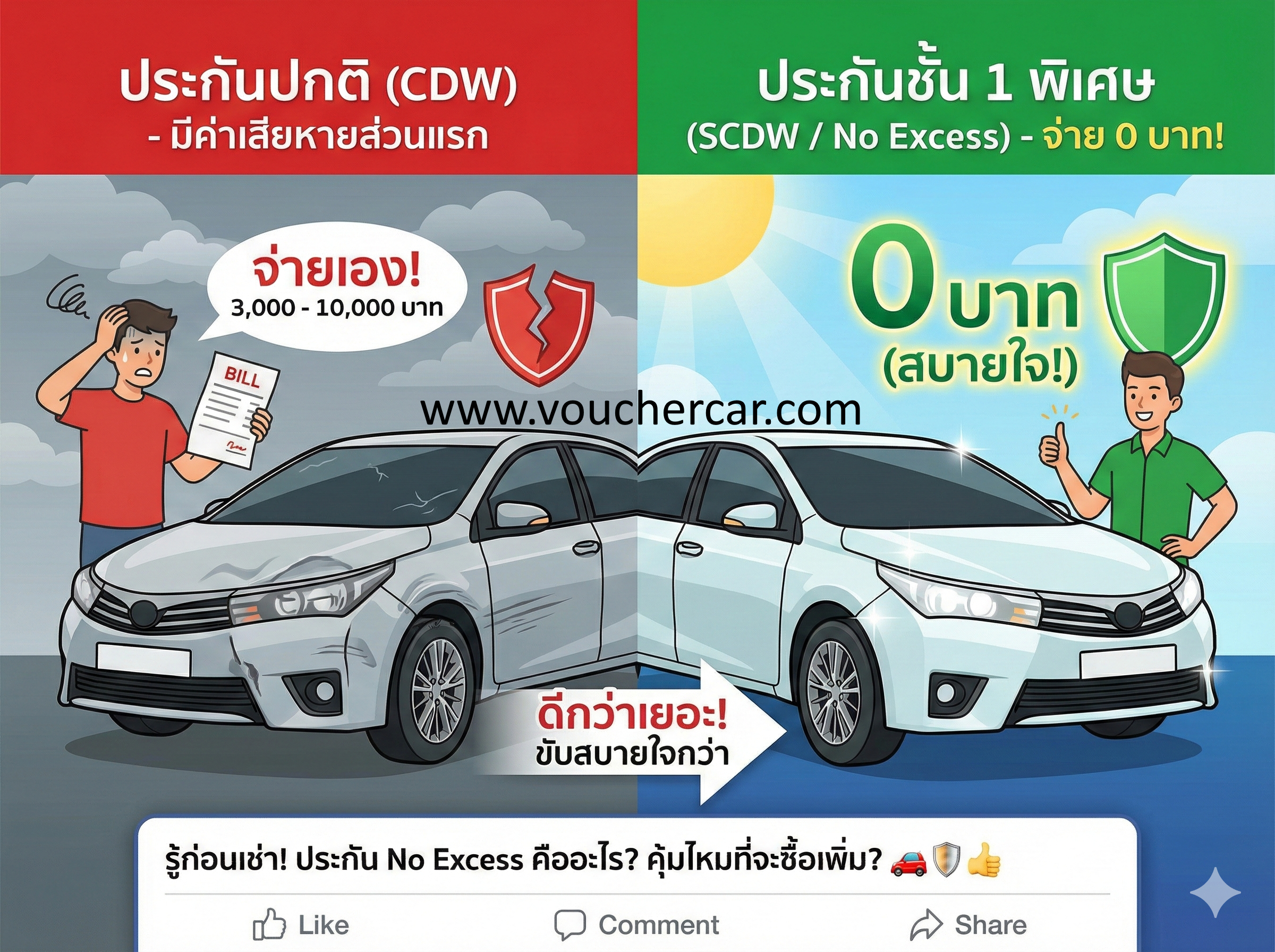 แบบปกติ: ผู้เช่าต้องจ่ายความเสียหายส่วนแรกตามที่ระบุ เช่น 3,000 10,000 บาท